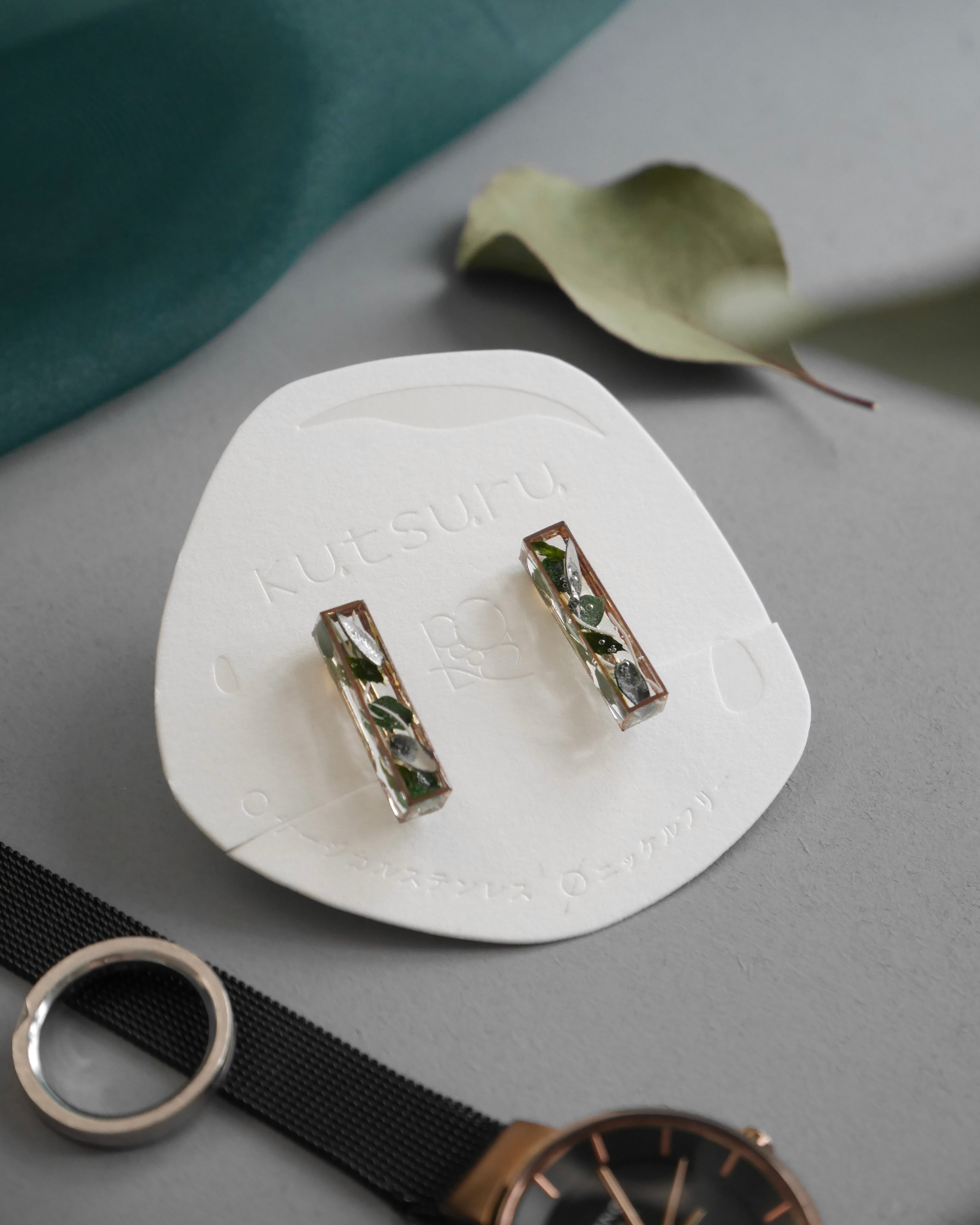 『LENS』 こぼれ落ちそうで落ちない雫と、向こう側の景色を楽しむkutsuruの推し定番シリーズ。 水滴の向こうにうつる文字や風景、花の彩りが広がったり歪んだりする。小さい頃に水レンズで遊んだ楽しさを思い出しながらできた作品。 アクセサリーとして着けていない時も、いろんな角度から覗いて変化を楽しんでほしい。 向こう側の彩りを取り込んでひろげる透明感はどんなお肌、髪色、ファッションスタイルにも馴染んでくれます。 小ぶりサイズで軽く、付けていることを忘れるような着用感。 水滴フェチ/雨粒フェチ/表面張力フェチ たくさんの透明沼の方に刺さりますように。 ・サイズ:約1.5×1.5×0.8(縦×横×厚み cm) ・重さ:約2.5g ・素材:レジン、プリザーブドフラワー、ドライフラワー ・金具:ニッケルフリー ※着用画像は商品とは別カラーです。着用感の参考としてご覧ください。 【ご購入前にお読みください】 ※アクセサリー金属パーツは、手汗等の汚れにより酸化し変色する場合があります。レジンは黄変しにくいものを使用していますが、封入しているお花は少しずつ色味が変化していきます。使用後は軽く拭くなどお手入れをし、日の当たらない場所での保管をお願いいたします。 ※写真と実際の商品は色味が若干異なる場合がございます。